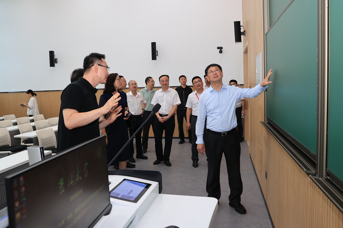 张希来到法学楼,实地检查了即将投入使用的法学楼B区“三化”教室建设情况,听取学校2024年秋季学期教学准备情况汇报。张希指出,要科学合理安排学生上课地点,选择就近排课,缩短学生的通勤距离,提升学习效率;提高教师教育信息化的技术运用能力,不断提升育人实效;加强学生教育,引导学生爱惜公共财产,自觉维护公共空间环境。张希强调,开学在即,各部门要紧密配合,确保新学期教学工作顺利开展,保障教学质量。要做好本科教育教学审核评估迎评工作,不断总结经验、找准问题,以评促改、以评促建,构建追求卓越的本科教育体系。