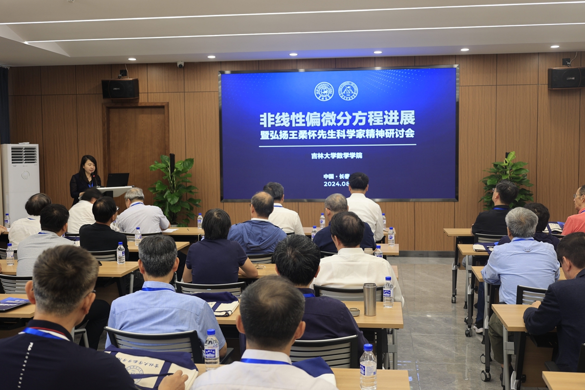【文字/图片 韩帅】8月11日,吉林大学举办“非线性偏微分方程进展暨弘扬王柔怀先生科学家精神研讨会”,纪念吉林大学数学学科的奠基者之一,我国偏微分方程领域主要学术带头人,我国著名的数学家——王柔怀先生诞辰100周年。中国科学院院士、武汉大学张平文,中国科学院院士、北京应用物理与计算数学研究所江松,中国科学院院士、中国科学院数学与系统科学研究院张平,中国科学院院士、浙江大学包刚,王柔怀先生家属、香港中文大学(深圳)教授王学锋,四川大学教授王向东等出席会议。中国科学院院士、吉林大学校长张希出席会议并致辞。会议由吉林大学数学学院院长张然主持。