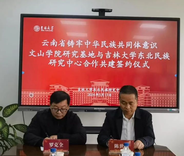 为深入学习贯彻习近平总书记关于加强和改进民族工作的重要思想,进一步铸牢中华民族共同体意识,5 月 13 日上午,云南省铸牢中华民族共同体意识文山学院研究基地与吉林大学东北民族研究中心合作共建签约仪式在吕振羽楼 301 会议室举行。吉林大学东北民族研究中心主任罗克全教授、中心副主任王成教授、中心副主任支继超副教授三位负责人参加了本次会议。