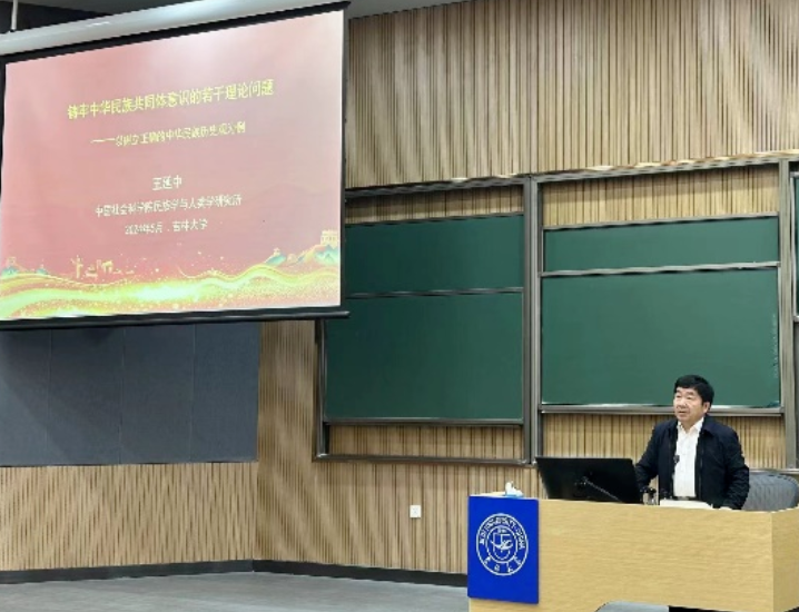5月9日下午,中国社会科学院民族学与人类学研究所所长、中央四部委铸牢中华民族共同体意识研究基地首席专家王延中教授做客我校,在中心校区逸夫教学楼第五阶梯教室以《铸牢中华民族共同体意识的若干理论问题--以树立正确的中华民族历史观为例》为题开展了一场精彩讲座。讲座由东北民族研究中心学术委员会主任邵彦敏教授主持,吉林大学东北民族研究中心主任罗克全教授、我院“中华民族共同体概论”课程教学团队及120余名学生参与此次讲座。