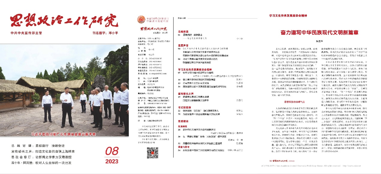 近日,吉林大学东北民族研究中心专家韩喜平教授在《思想政治工作研究》2023年第8期发表题为《奋力谱写中华民族现代文明新篇章》的文章。