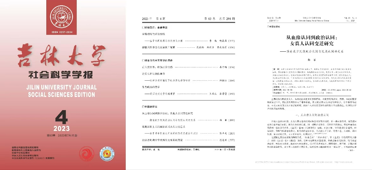 近日,吉林大学东北民族研究中心专家杨军教授在《吉林大学社会科学学报》2023年第4期发表题为《从血缘认同到政治认同:女真人认同变迁研究——兼论北方民族政治认同与民族认同的关系》的文章。